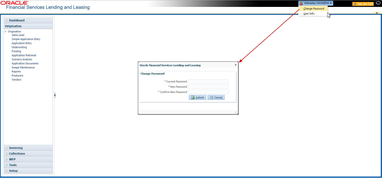 - User ID that you have currently logged/Signed in. Click the adjoining drop-down arrow, the system displays the following options: