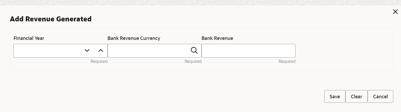 This topic provides the systematic instruction to add the Revenue Generated for each Financial Year.