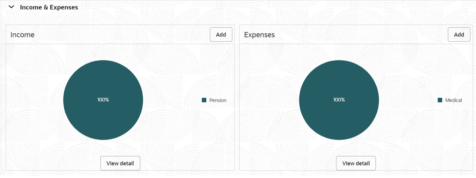 - On the Financial Profile screen, click and expand Assets & Liabilities segment.The Assets & Liabilities screen displays.