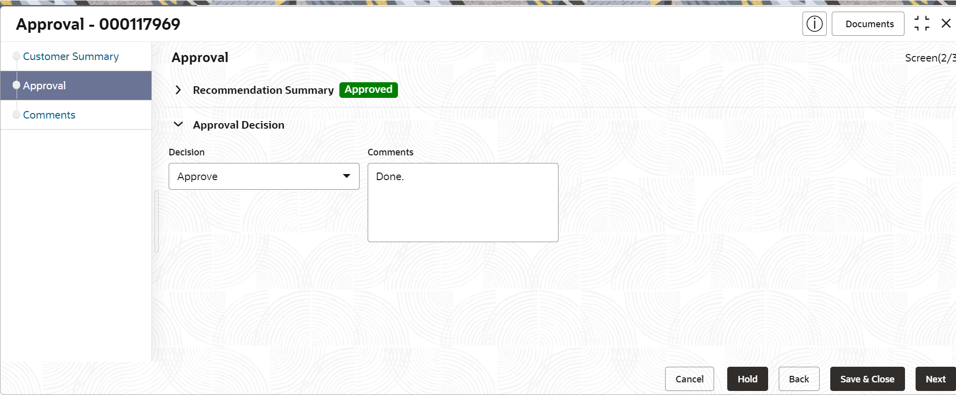 4. View Recommendation Summary as Approved or Rejected based on the Recommendation Decision provided in Recommendation stage.