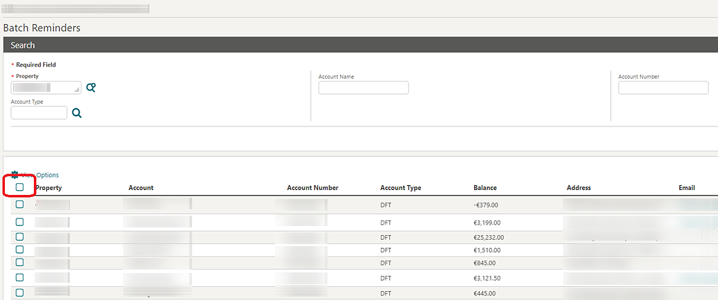 The following updates are made to AR reminder letters: Batch Reminders is updated with a Select All check box in the column header.