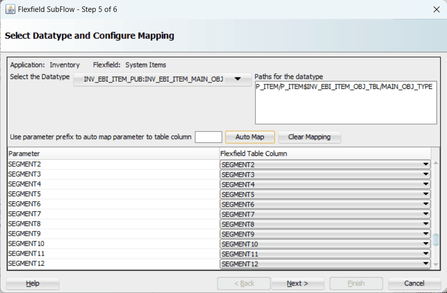 Oracle E-Business Suite Adapter uses the following procedures to complete the design-time tasks to support message normalization: