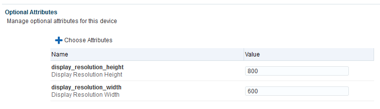 Use the Optional Attributes section to manage attributes such as display resolution height and width. You can edit their default values as required.