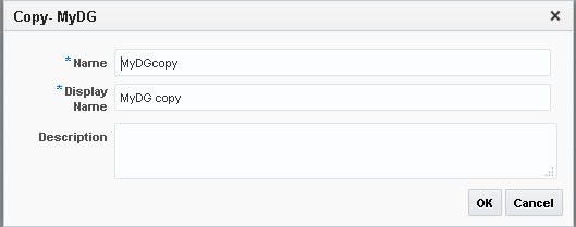 In the Copy dialog, specify the name, display name, and description of the device group (Figure 6).