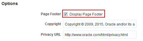 Select or deselect Display Page Footer to display or hide copyright and privacy information in the page footer.