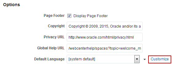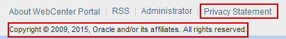 System administrators can customize or hide copyright and privacy statements in WebCenter Portal: