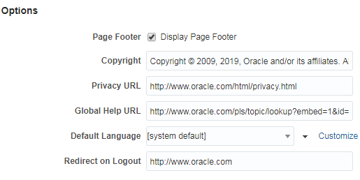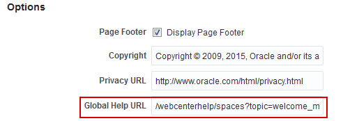 http://www.oracle.com/pls/topic/lookup?ctx=fmw122130&id=GUID-AECE2F61-2727-4DB0-B74B-4BF279570BDD. Enter this URL if you want to return to the default setting.Note: If you leave the Global Help URL field blank, the Help Contents link does not appear.
