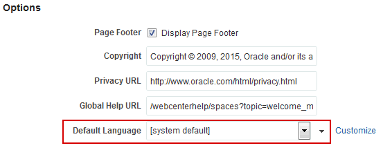 Out-of-the-box, WebCenter Portal supports 27 languages and 100 different locales. It is the system administrator’s job to choose a default display language for WebCenter Portal.