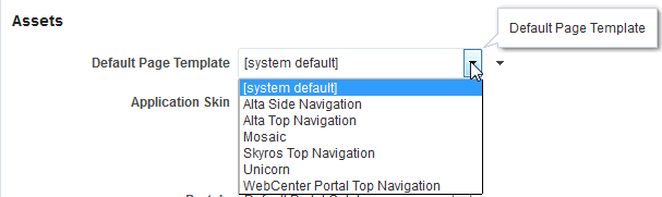[system default]specifies the default page template defined for WebCenter Portal, hardcoded in webcenter-config. xmlTo learn how to add page templates to this list, see Publishing or Hiding a Page Template in Building Portals with Oracle WebCenter Portal.
