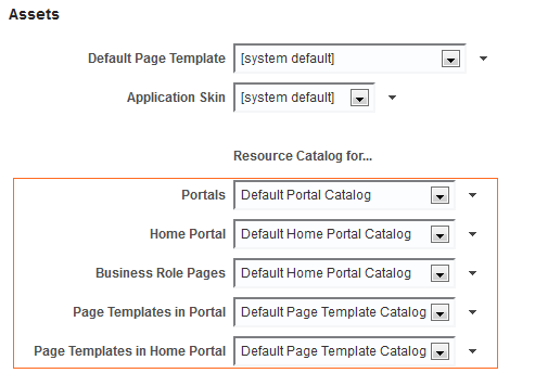 System administrators can specify thedefault resource catalog to be used for pages, page templates, page styles, and task flow assets in: