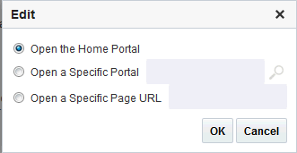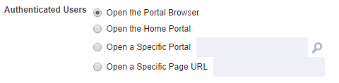 Open a Specific Portal. Select to specify that a particular portal displays, and enter the portal name. For example,