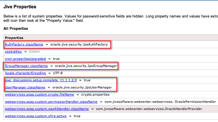 Note: The table below shows values appropriate for OID. For the permissible values for other LDAPs, such as Active Directory, see OPSS System and Configuration Properties appendix in Securing Applications with Oracle Platform Security Services.