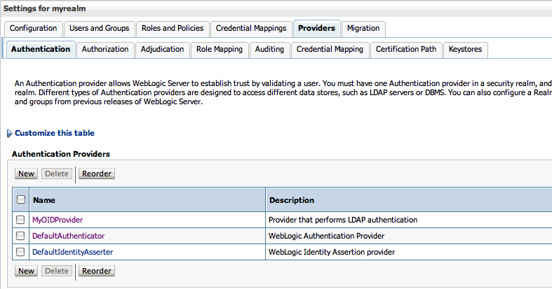 OIDAuthenticatorfor a provider that authenticates the user for the Oracle Internet Directory). -