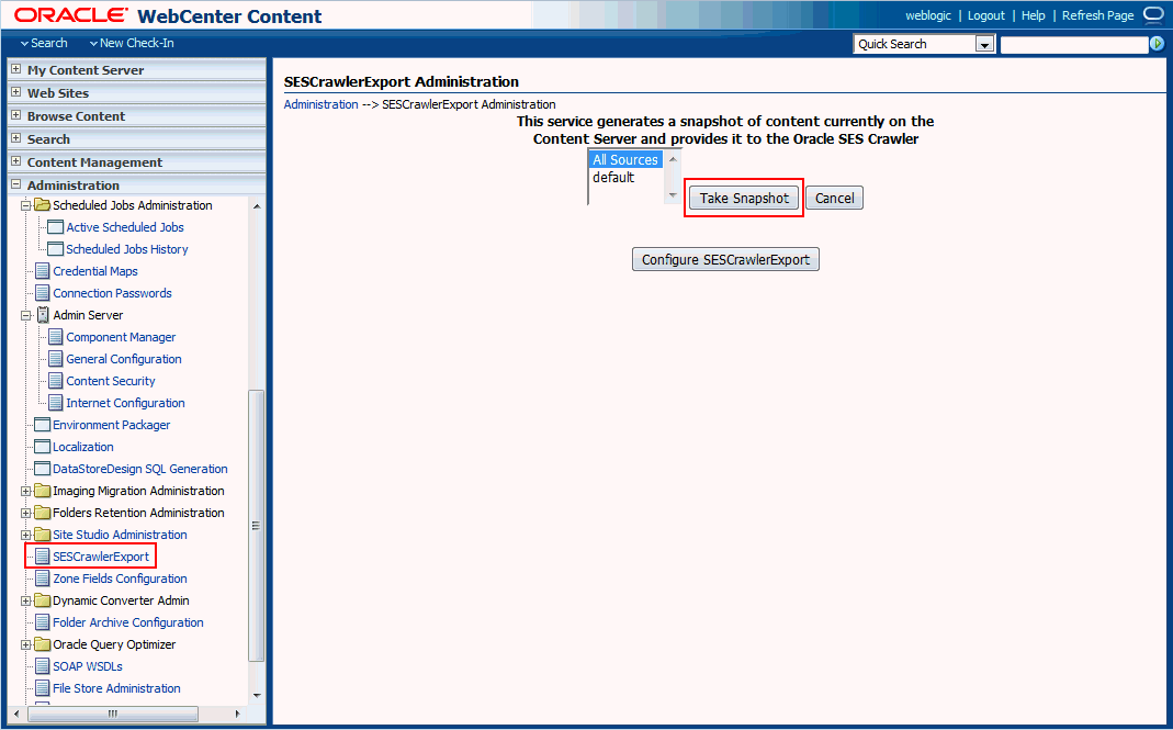 Adminrole through the Oracle WebLogic Server Administration Console and theAdministratorrole granted through WebCenter Portal Administration.