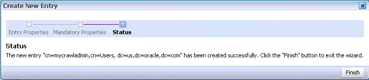 The following example uses Oracle Directory Services Manager to create the mycrawladmin user: