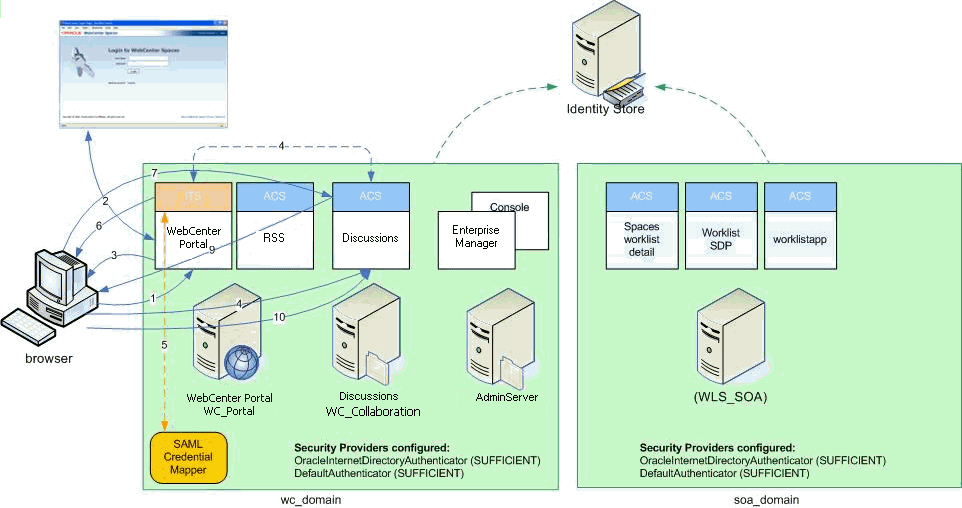 Single sign-on provides authentication across a topology’s components allowing users to log in once, rather than having to log in each time they access a component. Without implementing single sign-on, users must provide credentials each time they access components, such as discussions or Content Server, from WebCenter Portal.