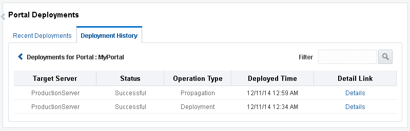 Viewing Portal Deployment History