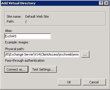In the Physical Path field, specify a folder outside of Microsoft Exchange Server installation. For example,