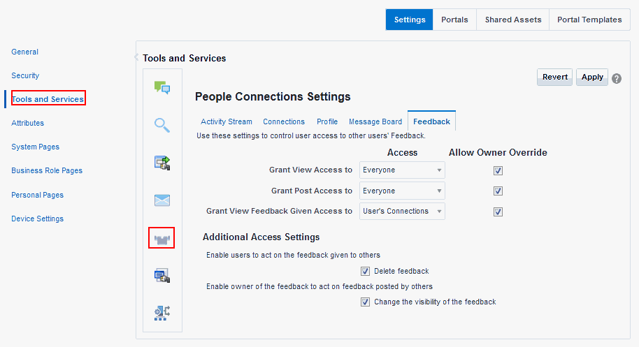 Shared with whomever is permitted to view such activities (see Setting Feedback Preferences in Using Portals in Oracle WebCenter Portal). |