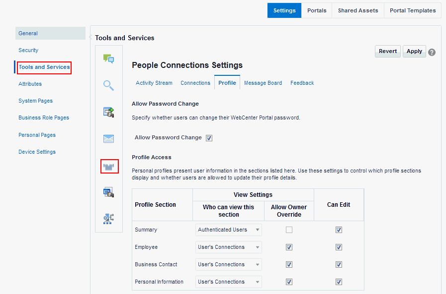 Accessing People Connections Administrative Settings