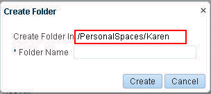 For example, if Karen creates any new folders in the Home portal in a Folders_g setup, the new folders are created under /PersonalSpaces/Karen as shown in Figure 2.