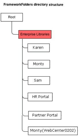 If Karen creates any new folders in the Home portal in a FrameworkFolders setup, the new folders are created under /Enterprise Libraries/Karen as shown in Figure 3.
