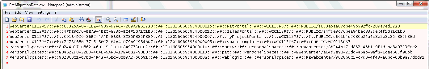 By default, PreMigrationData.csv is stored at the following path: WCP_ORACLE_HOME/common/wlst/FG_FF_MIGRATION. You can choose a different location for the file while running the exportFoldersGData WLST command.