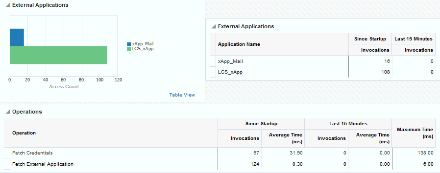 Recent History metrics can also help you prioritize which areas to investigate and which areas you can ignore when performance issues arise. For example, if an ongoing performance issue is reported and Recent History metrics for a particular component shows a value of 0, it indicates that the component has not been used in the last 10-15 minutes. Similarly, if the “Average Response Time” value is small and the “Invocation” count is low, the component may not be contributing to the performance problem. In such cases, administrators can investigate other areas.