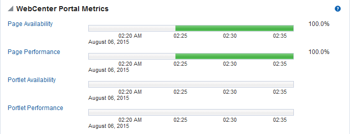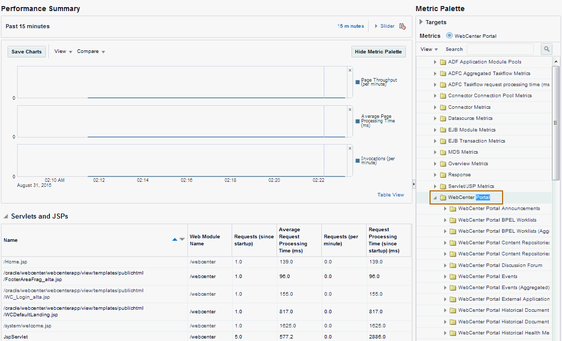 1 The last 10-15 minutes of data is used to calculate recent performance metrics. For details, seeUnderstanding Oracle WebCenter Portal Metric Collection .