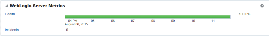 Other metrics, such as JVM and WebLogic Server metrics, are collected at a pre-defined frequency. Out-of-the-box, the sample frequency is 1 sample every 5 minutes but you can customize this value if required. For details, see Configuring the Frequency of WebLogic Server Health Checks.