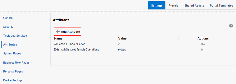 Use the Attributes page in WebCenter Portal Administration to manage global attributes, which can be used by any portal in WebCenter Portal.