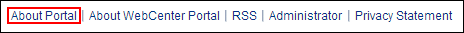 The About WebCenter Portal component is a link that opens the About WebCenter Portal dialog with application version and copyright information (Figure B-2).