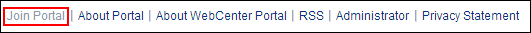 This link displays only to visitors who are not registered WebCenter Portal users, and only when the system administrator has enabled Allow public users to self-register.