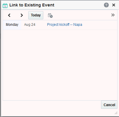 The Link to Existing Event dialog (Figure 25-12) opens, showing the current day’s events.