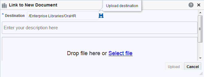The location of the uploaded document depends on where you initiated the linking action. The document could be uploaded to the selected portal’s document library or to the root folder of your WebCenter Portal default document repository connection.