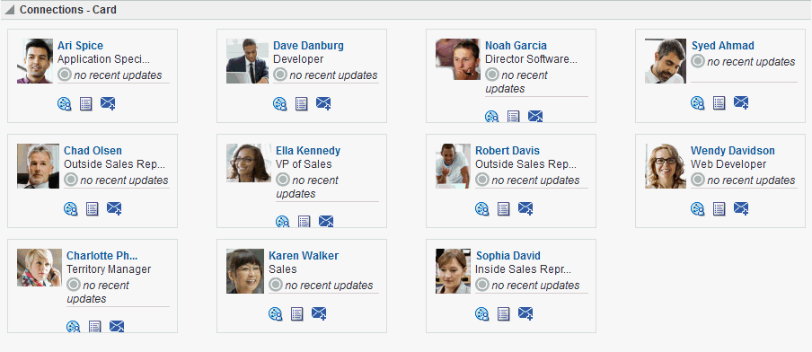 WebCenter Portal provides the following Connections views that can be added to a portal page: