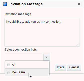 Optionally, from the Select connection lists list, select one or more connections lists to which to add the user once the invitation is accepted.