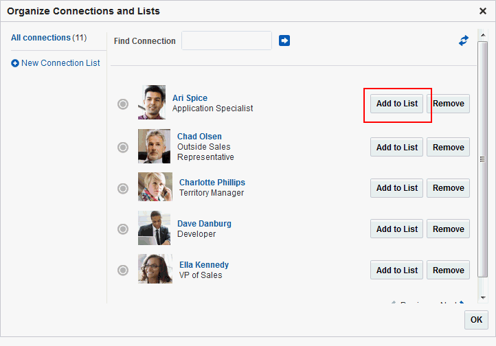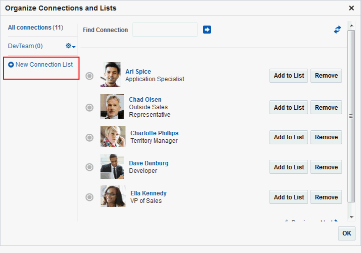 See Also: For information about adding connections to a list, see Adding a Connection to a List.