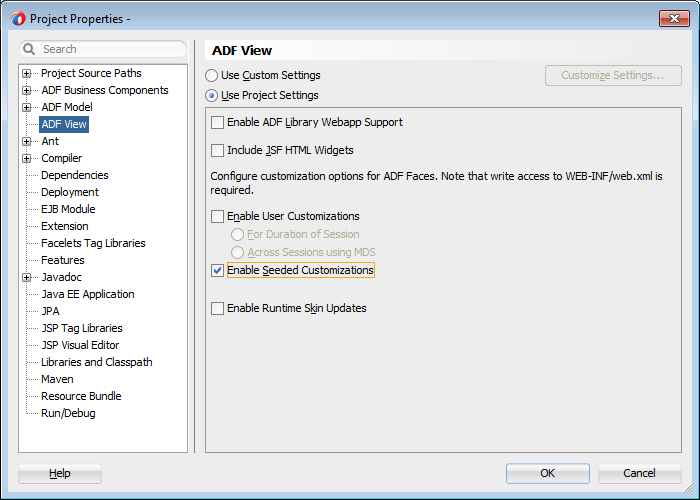Seeded customization of an application is the process of taking a generalized application and making modifications to suit the needs of a particular group, such as a specific industry or site. Seeded customizations exist as part of the deployed application, and endure for the life of a given deployment. This chapter describes how to create a customizable application, and then customize the application using JDeveloper.
