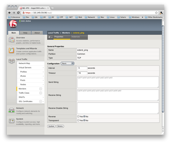 This appendix provides instructions for using the F5 BIG-IP Local Traffic Manager (LTM) hardware load balancer to balance Coherence*Extend client connections. Instructions are also included to use the BIG-IP system to off load SSL processing.