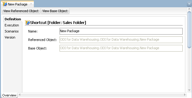 A shortcut is a link to an Oracle Data Integrator object. You can create a shortcut for datastores, mappings, packages, and procedures.