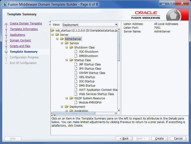 Select this option to create a new domain template that defines the full set of resources within a WebLogic domain, including infrastructure components, applications, services, security options, and general environment and operating system parameters. You can use the template that you create as the basis for creating a WebLogic domain, by specifying the template in the Configuration Wizard, WLST, or the |