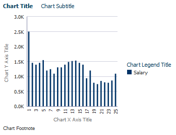 Figure 23-17 shows a bar chart configured to show a title and subtitle. The chart is also configured to show titles for the x-axis, y-axis, legend, and footnote.