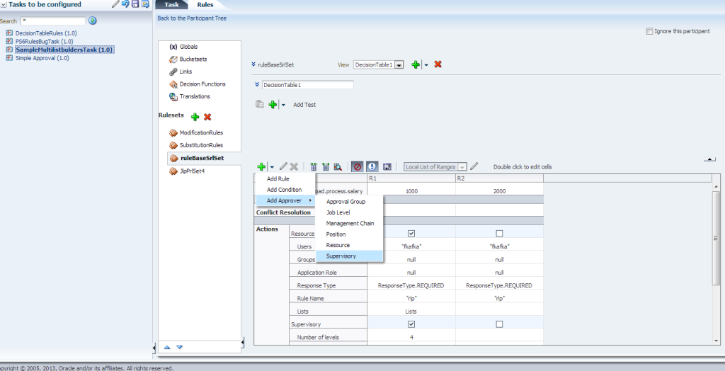 For more information about adding rules, see Working with Rulesets and Rules in Oracle Fusion Middleware User's Guide for Oracle Business Rules.