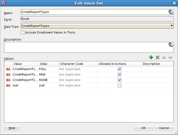 Oracle Business Rules also lets you use value sets to specify constraints for global initial values, function return values, or function argument values. For more information, see Working with Oracle Business Rules Globals and Associating a Value Set with Business Terms.