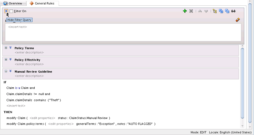 Figure 4-3 Showing or Hiding a Filter Query in a Rule Set