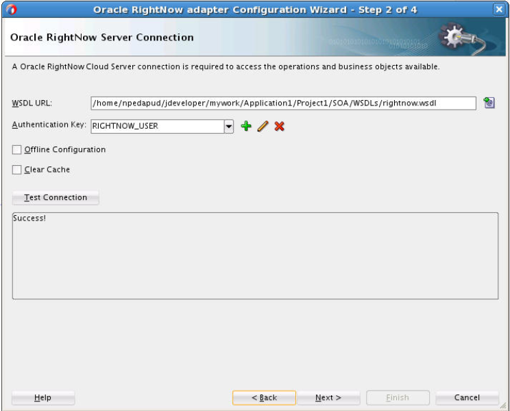 Click OK. You are returned to the Oracle RightNow Adapter Server Connection page.