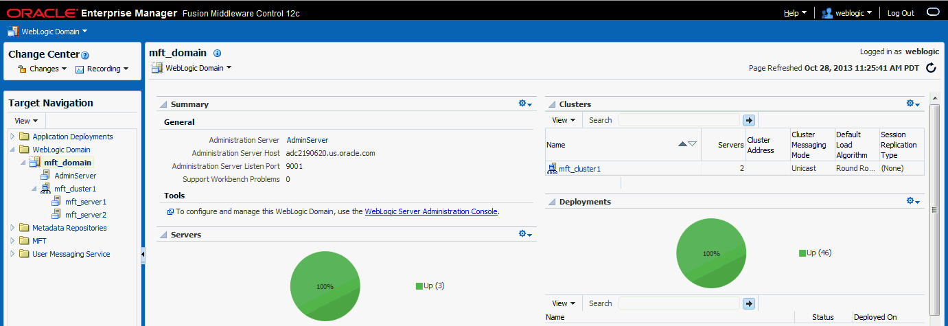 From the "Target Navigation" pane, click the arrows to expand the domain until the Managed Servers (mft_server1 and mft_server2) are visible.