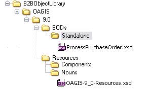 For example, as shown in Figure 11-4, copy the OAGIS ProcessPurchaseOrder.xsd file and all of its supporting schemas to this folder location, while also preserving the relative directory structure.