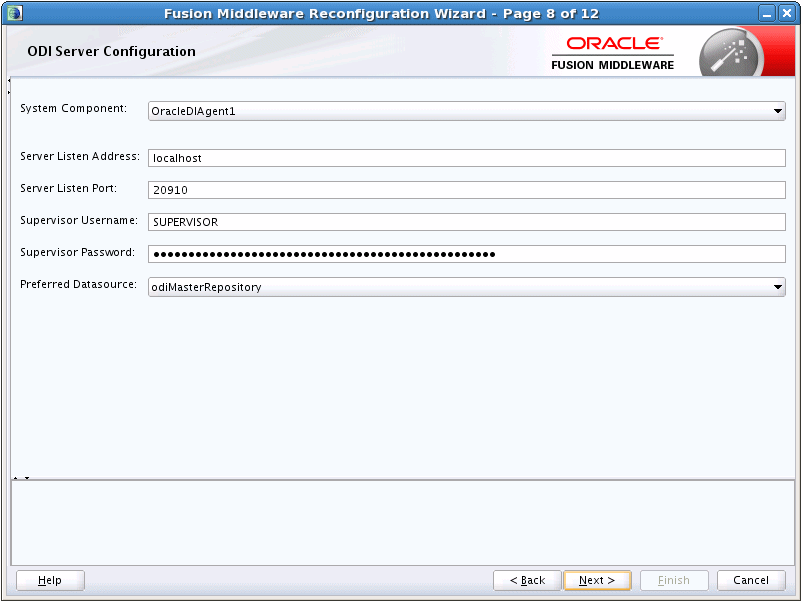 | Supervisor Username | Enter the ODI username that has Supervisor privileges. |